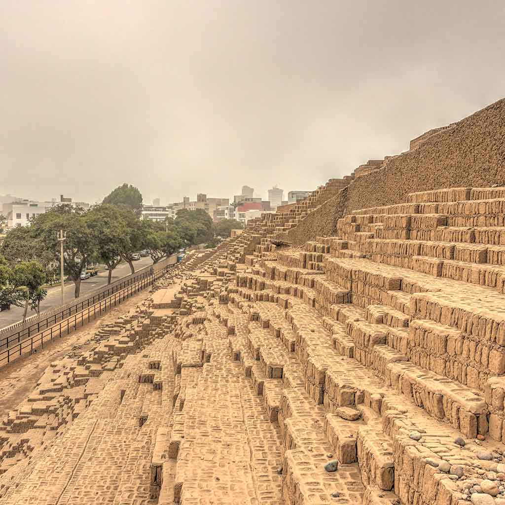Pirámide preincaica en Miraflores construida en adobe. Ofrece visitas guiadas y vista arqueológica.