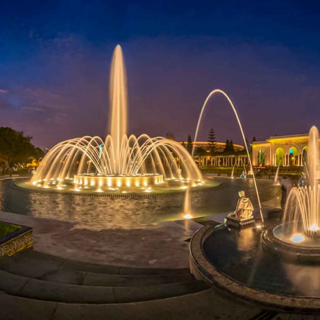 Espectáculo nocturno de fuentes danzantes, luces y música en el Parque de la Reserva. Una experiencia visual única que combina tecnología y arte