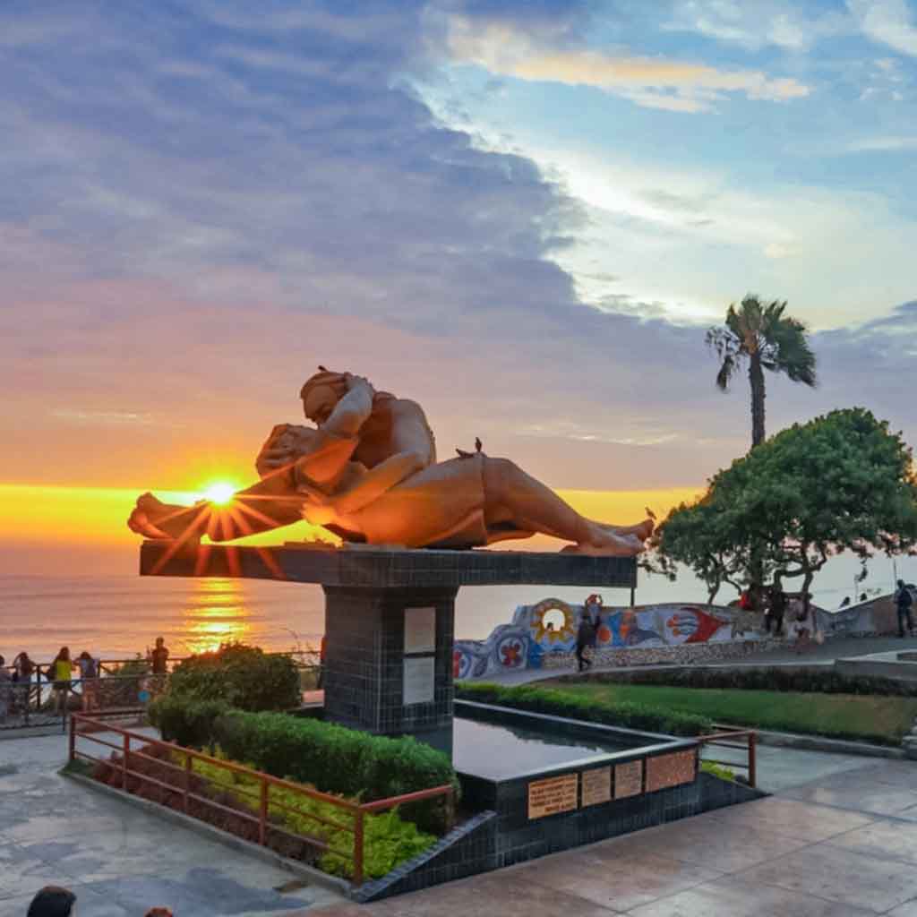 Mirador romántico con mosaicos y vista al mar. Escenario perfecto para fotos y atardeceres en Miraflores